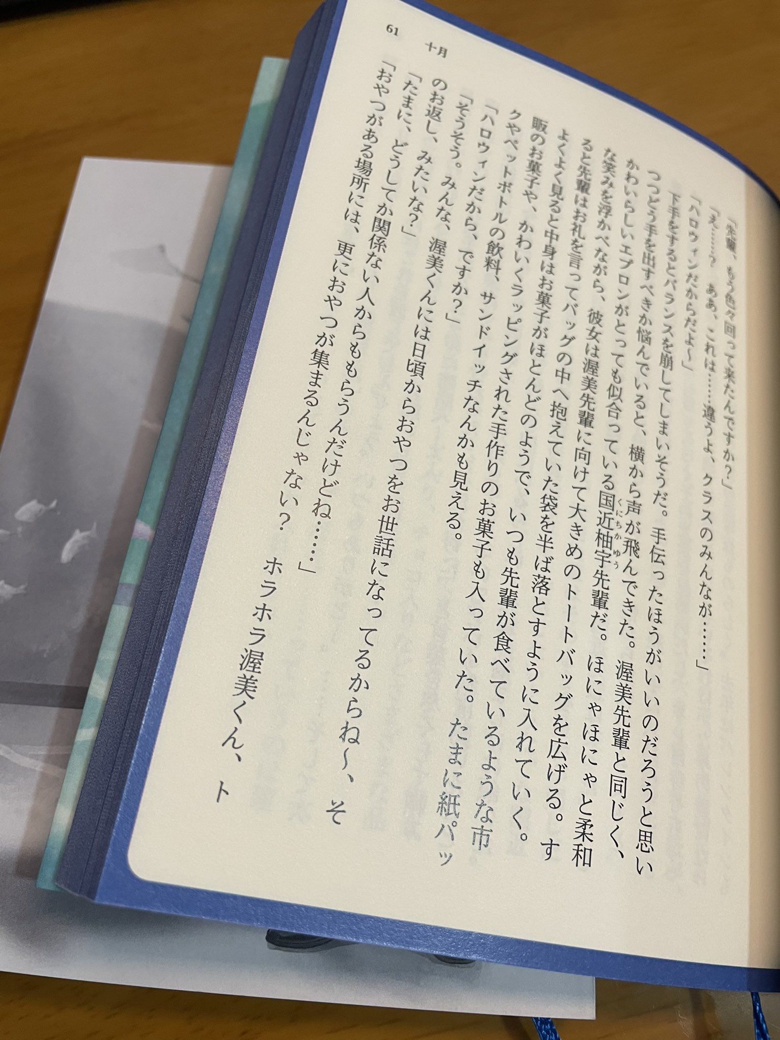 また、本作のテーマが「雨」なので表紙の色味とも合わせてスピンは青いものを選択。はっきりしつつも目に痛くない色でいいかと思います。