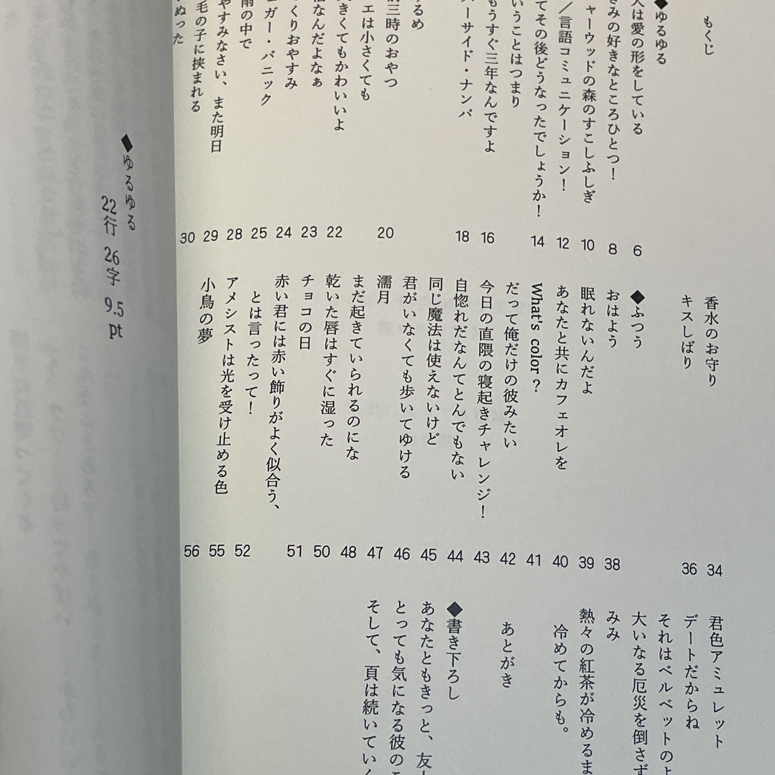 8冊目は特にいろいろ設定変えてみようと思って、一冊の中に三種類くらい文字組変えて…というチャレンジをしていましたがやはりよくわからないまま作業を終えてしまいました。